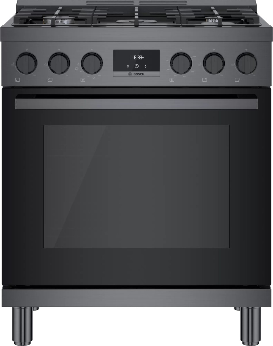 In addition to the industrial style gas models, Bosch offers a dual fuel option, packed with the same innovative functions, but featuring an electric oven for more precise temperature control.