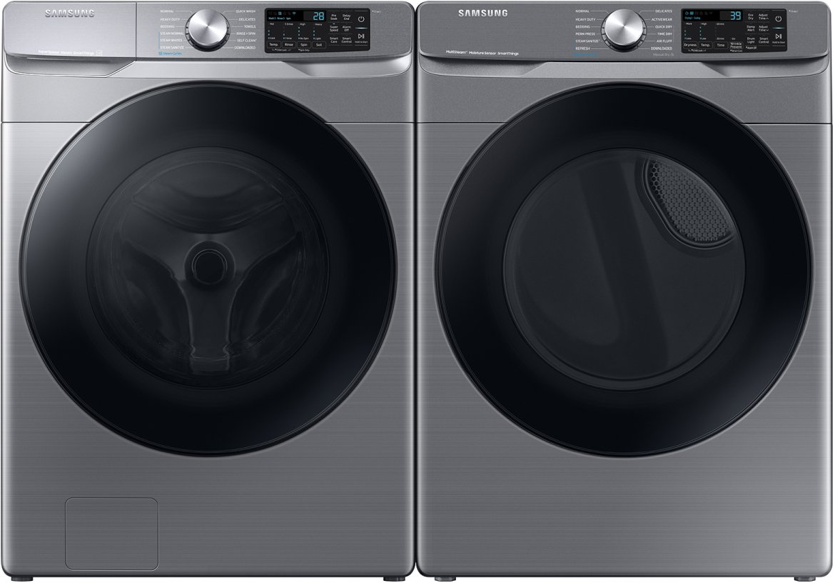 Samsung Platinum Front Load Laundry Pair with a 5.2 cu. ft. capacity front load washer and a 7.5 cu. ft. capacity front load electric dryer.Read More