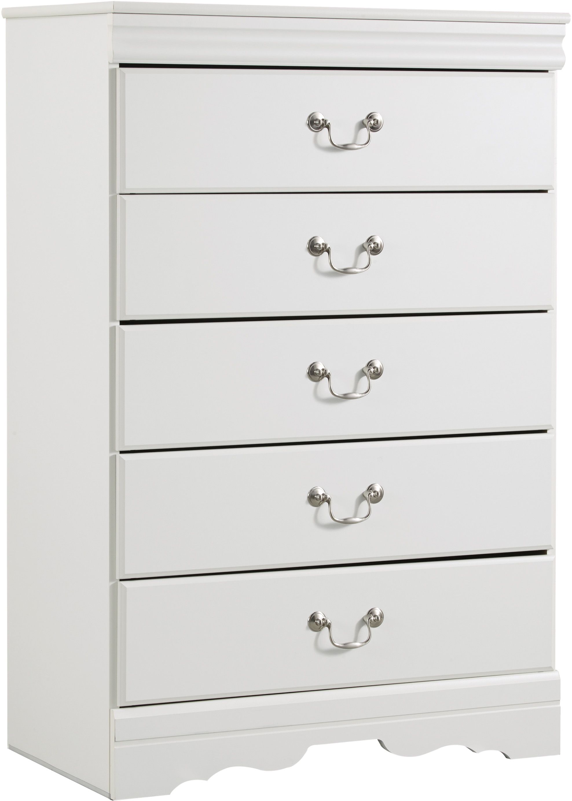 This Anarasia chest features 5 smooth-gliding drawers in a space saving vertical stack.