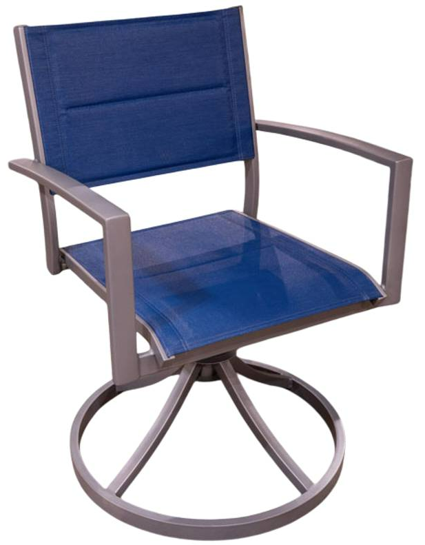 Bring casually cool style outdoors with this sling swivel chair. Sturdy aluminum construction and a goes-with-anything gray finish makes it the perfect patio or porch companion. A comfortably padded sling seating area in a beautiful blue hue completes the look.Read More