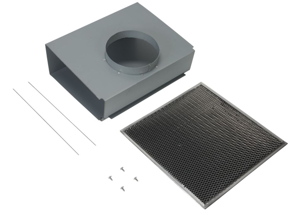 Package contains (1) Range Hood Recirculation Kit